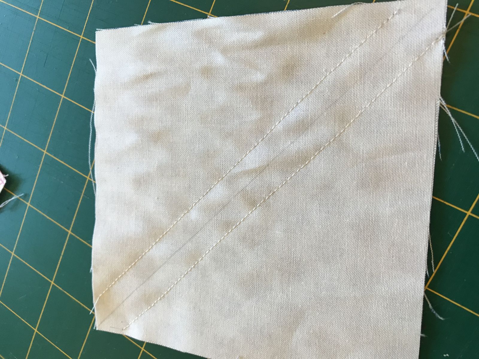 Then add a 2 1/2" strip to each side. Press the block and then trim each block to be 5" x 6".