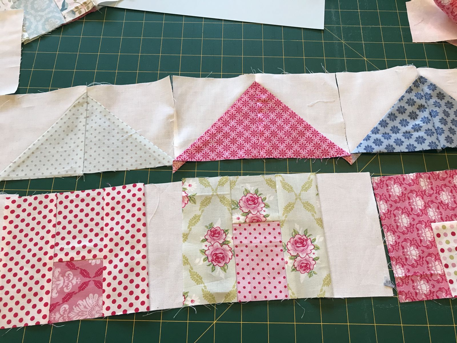 To start, join two of the smallest scrap pieces together to make a strip at least 5 1/2” long. This is the door section.