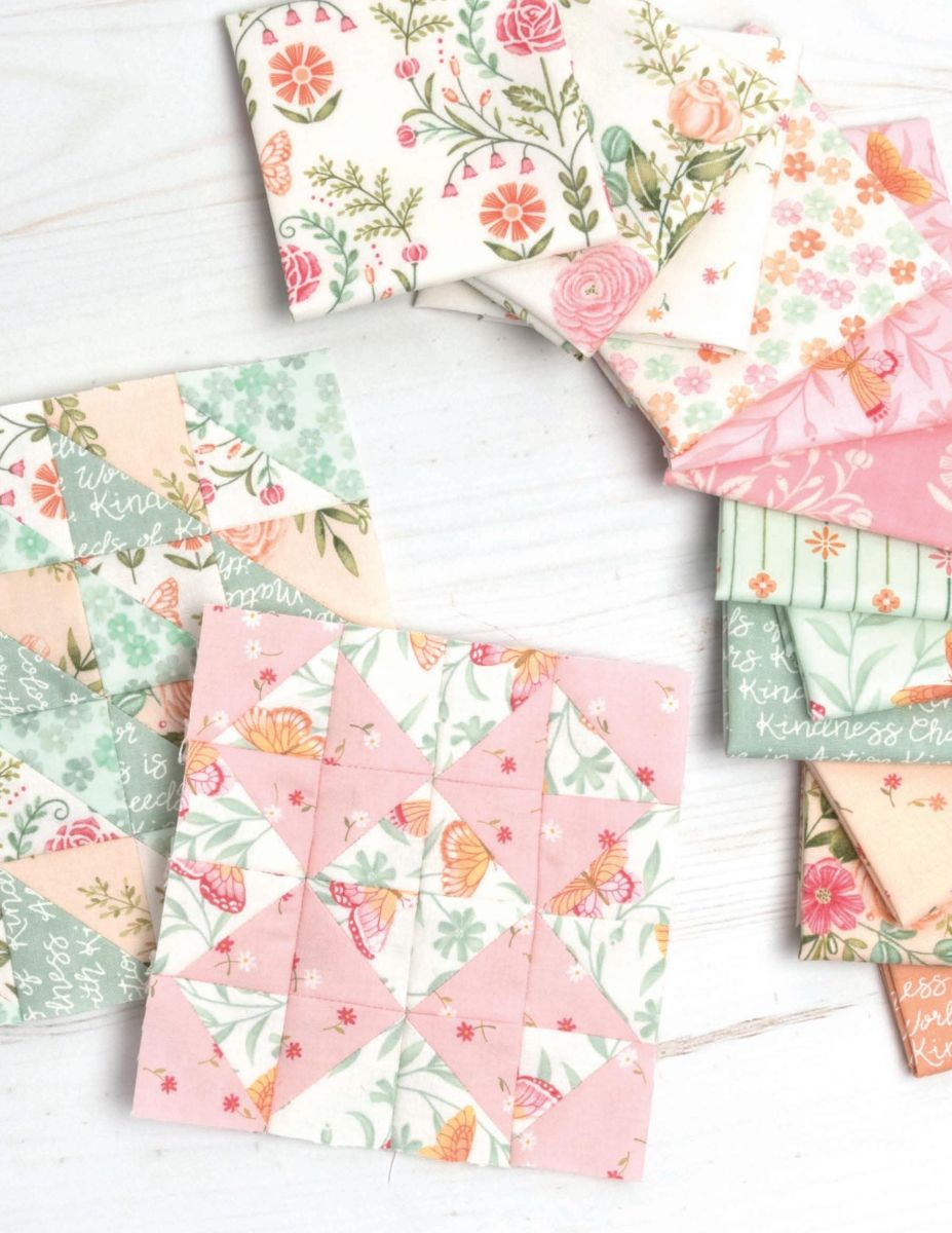 Kindness by Deb Strain for Moda is a beautiful patchwork fabric collection full of gentle florals, butterflies, and heartfelt sayings. Designed in soft corals, blush pinks, sage, and eucalyptus greens, this range has a calm, comforting feel that suits so many sewing projects.