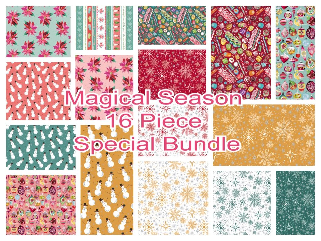 This curated bundle includes all prints in the Magical Season collection, making it perfect for quilts, Christmas projects, gift sewing, and coordinated festive makes.